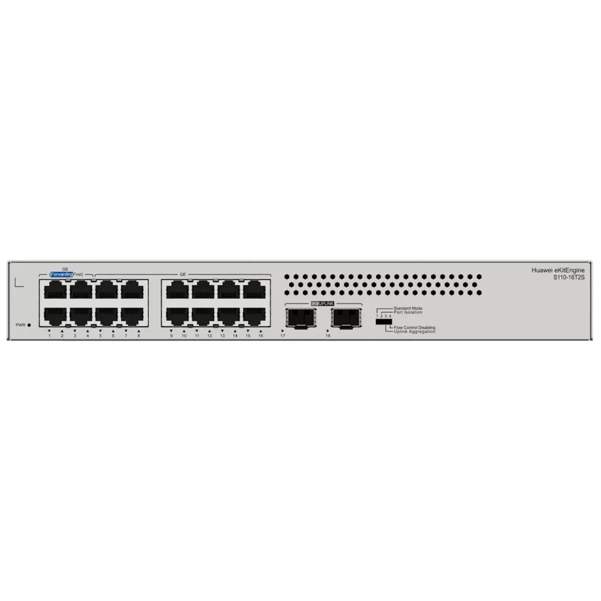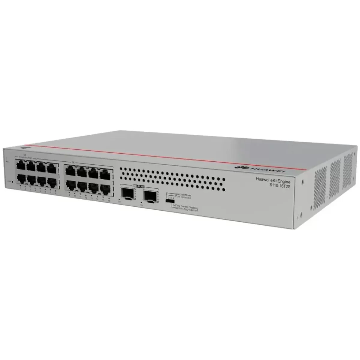 El switch gigabit de 16 puertos de Huawei cuenta con 2 bocas SFP adicionales y ofrece una velocidad de reenvío de paquetes de 26,78 megas por segundo.